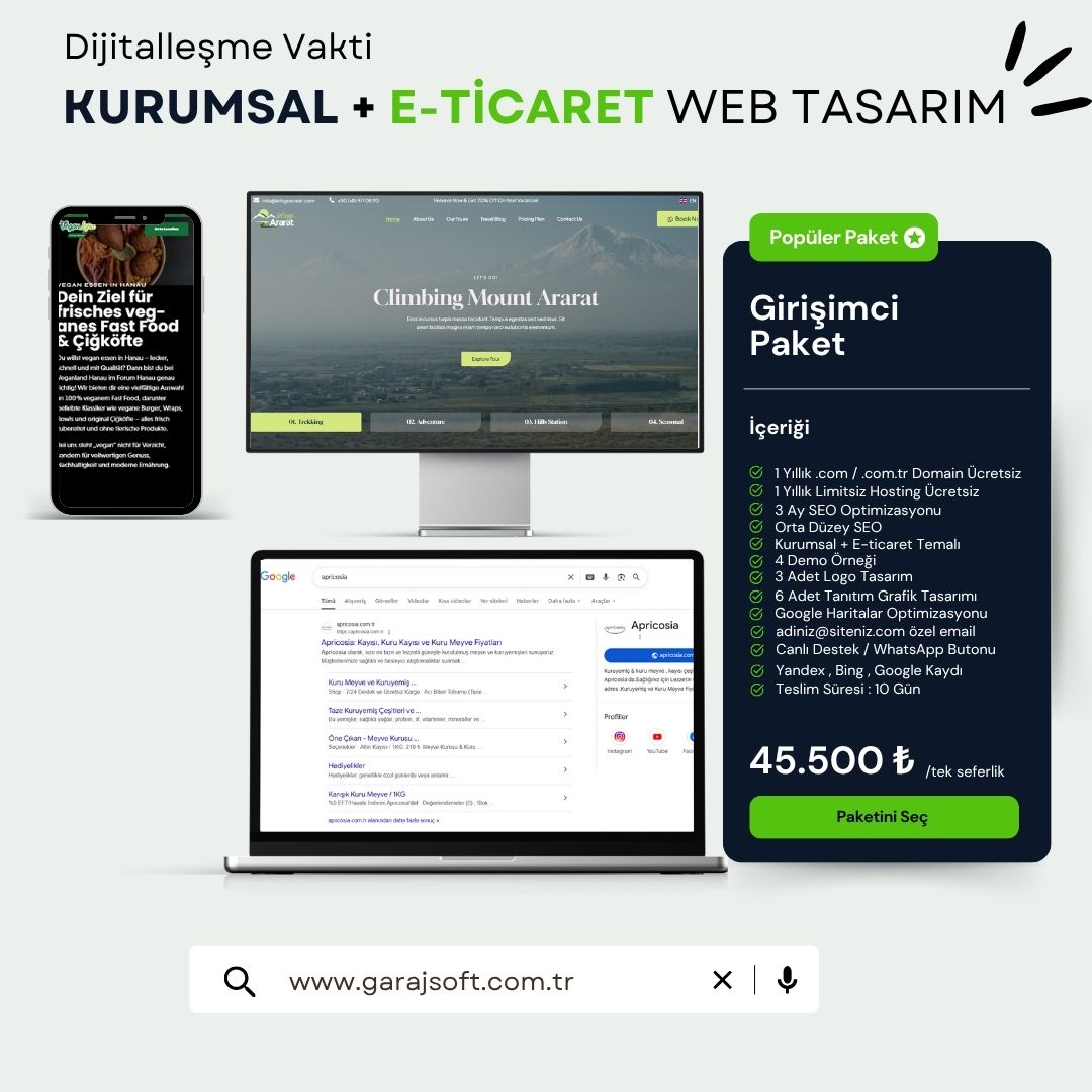 “Kurumsal + E-Ticaret Web Tasarım Paketi” ile hem markanızı dijital dünyada güçlendirin, hem de satışlarınızı artıracak profesyonel bir web sitesine sahip olun. 45.500 TL’ye 1 yılda kazandıracak dijital yatırım fırsatını kaçırmayın!